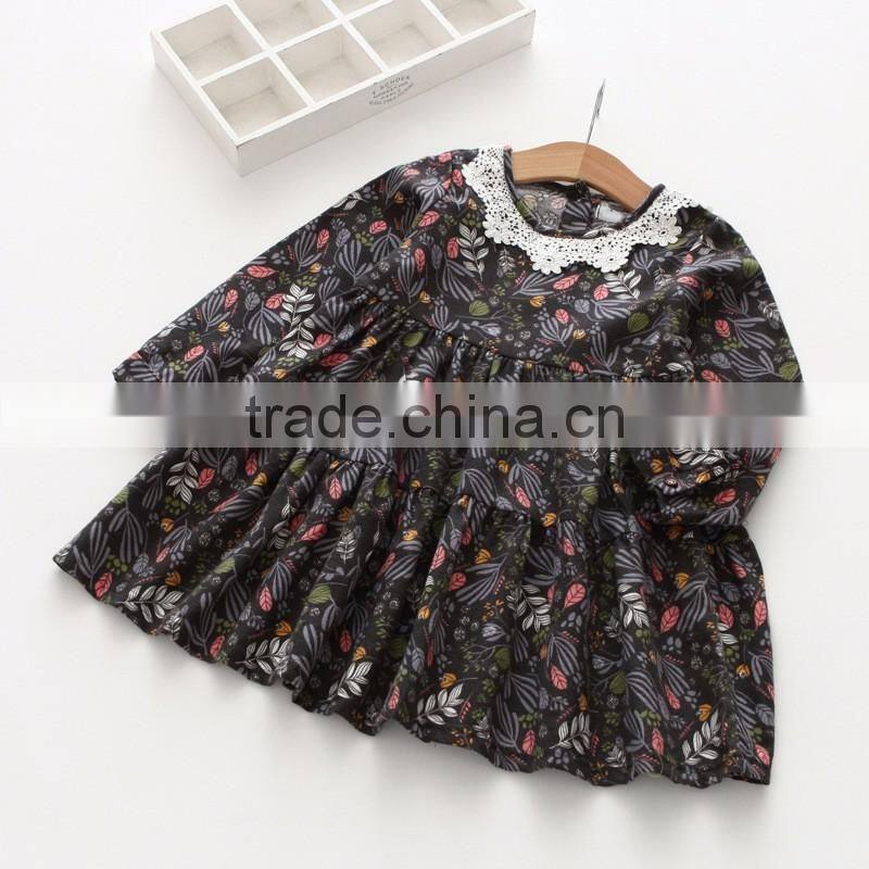 Autumn new style printing girls kids long sleeve cotton dress