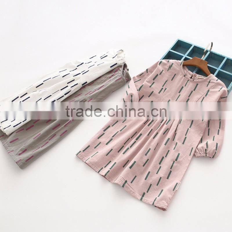 High quality cotton full printing girls kids long sleeve dress