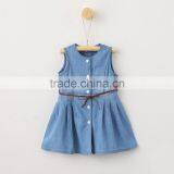 Casual Style Simple Design Belt Denim Children Girls Dress
