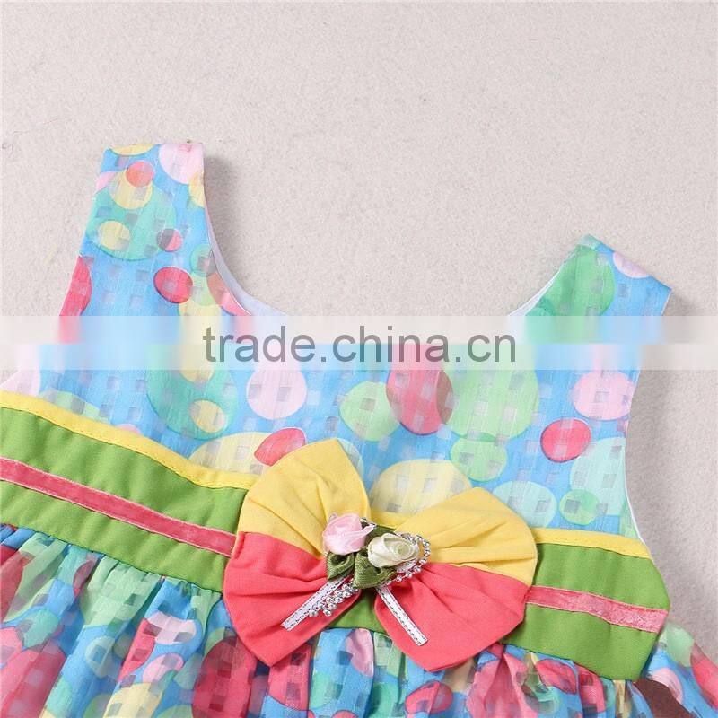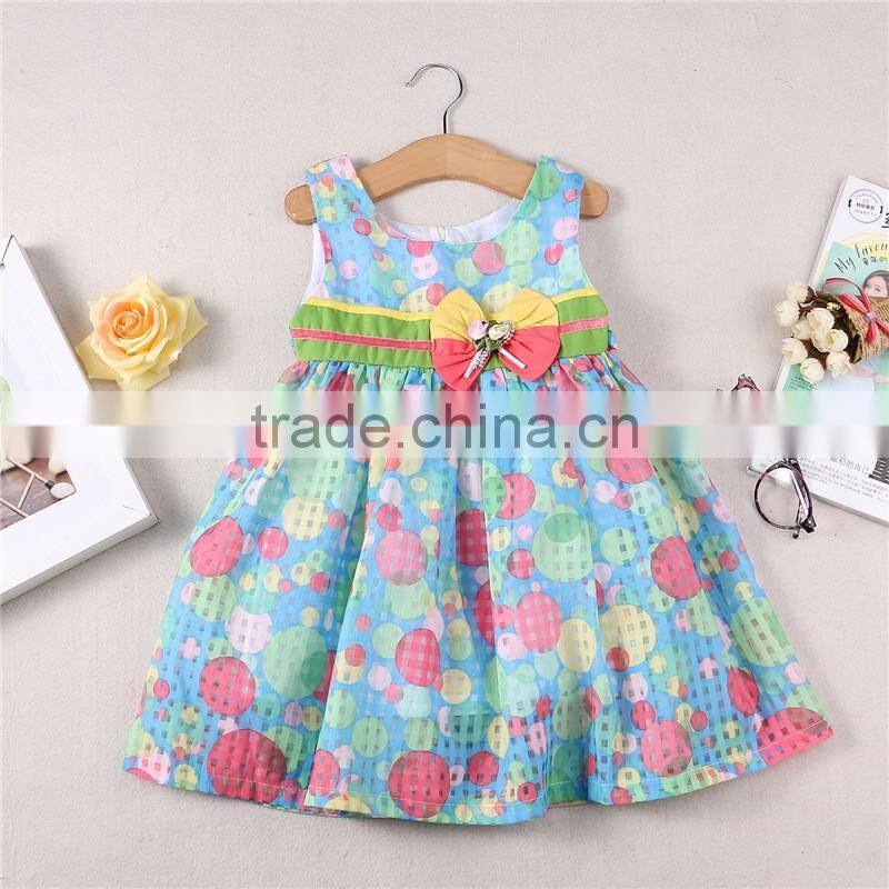 Wholesale Summer Bowknot Printing Princess Dress Baby Girl Vest Dress