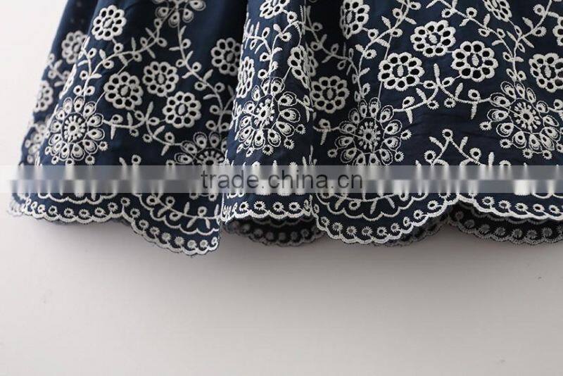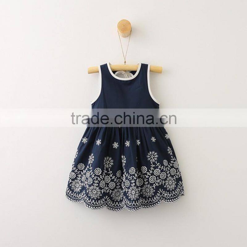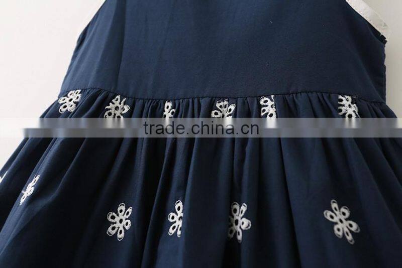 Hot sale navy blue embroidery no sleeve cotton baby girls dress