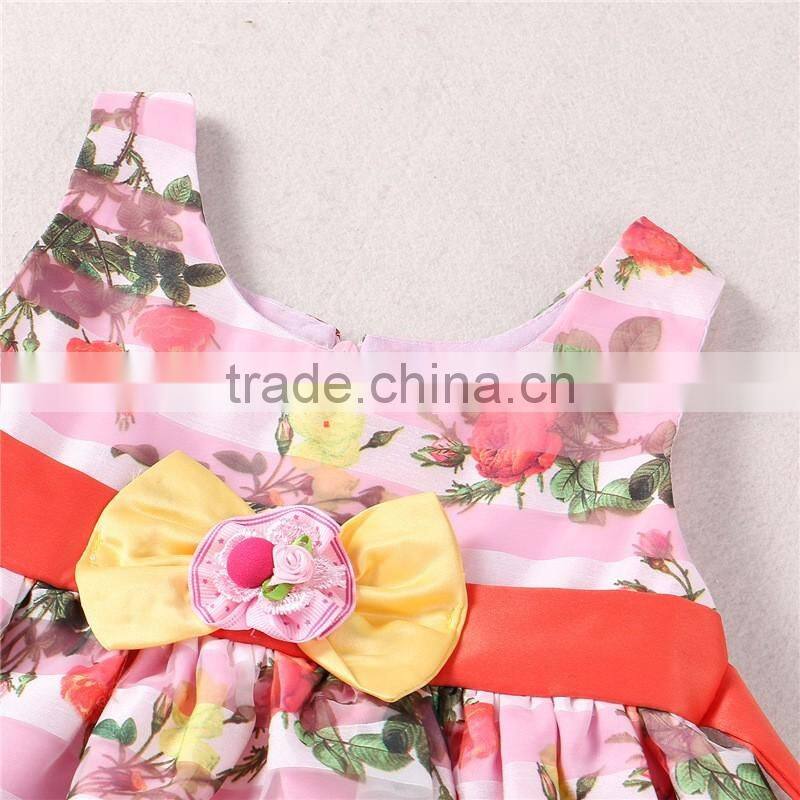 Wholesale summer bowknot flower design kids clothes girls dresses baby