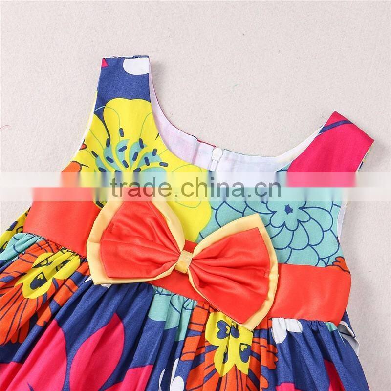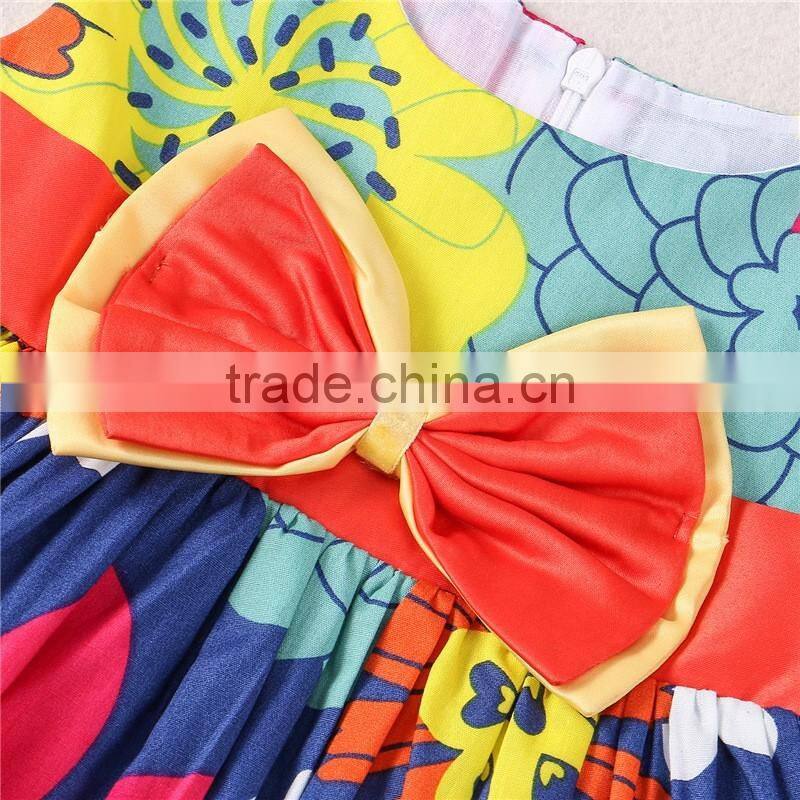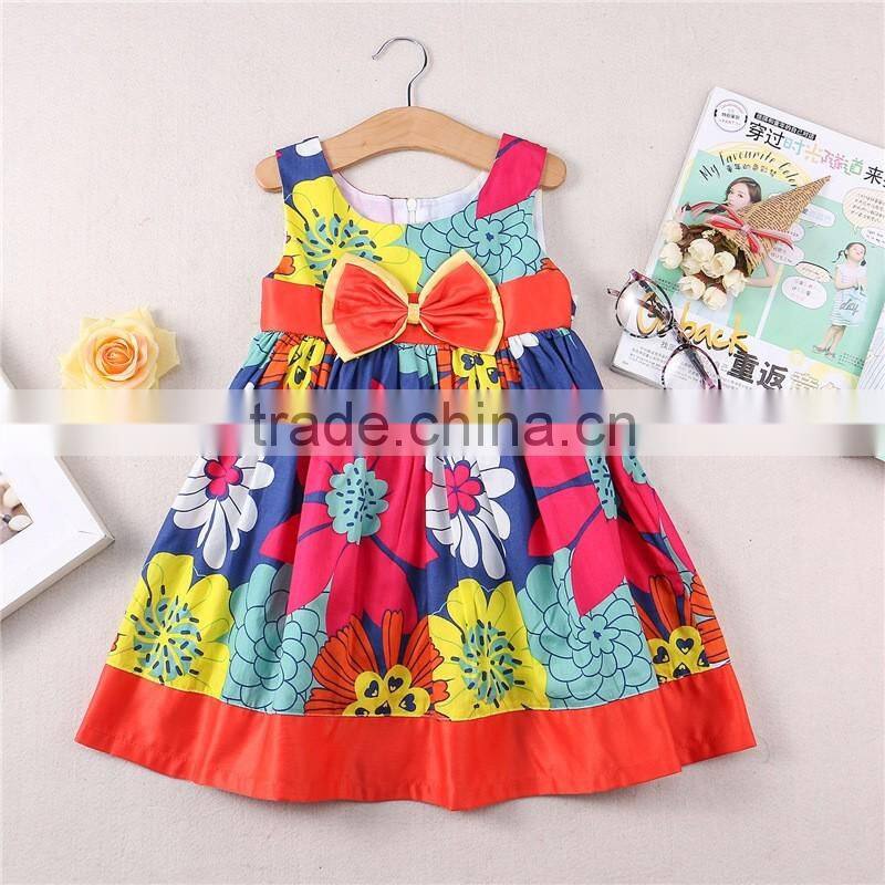 Casual style full printing summer soft girls cotton one piece dress