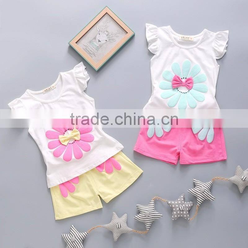 Wholesale summer printing girls kids clothes clothing set
