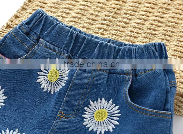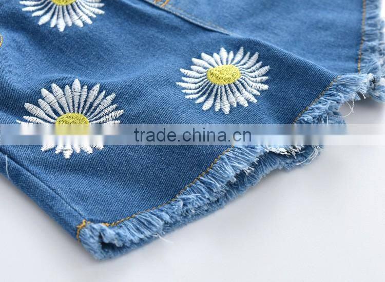 New fashion wholesale kids jeans denim flower shorts for baby girls