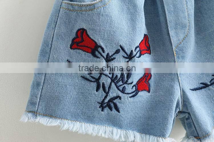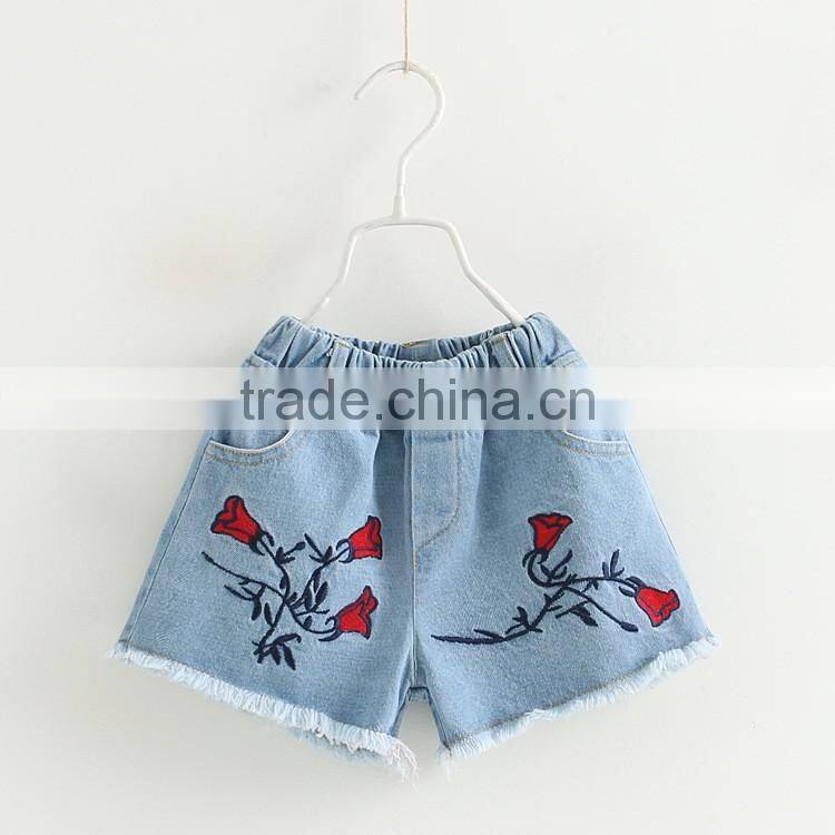 Summer wholesale solid color embroidery girls denim shorts