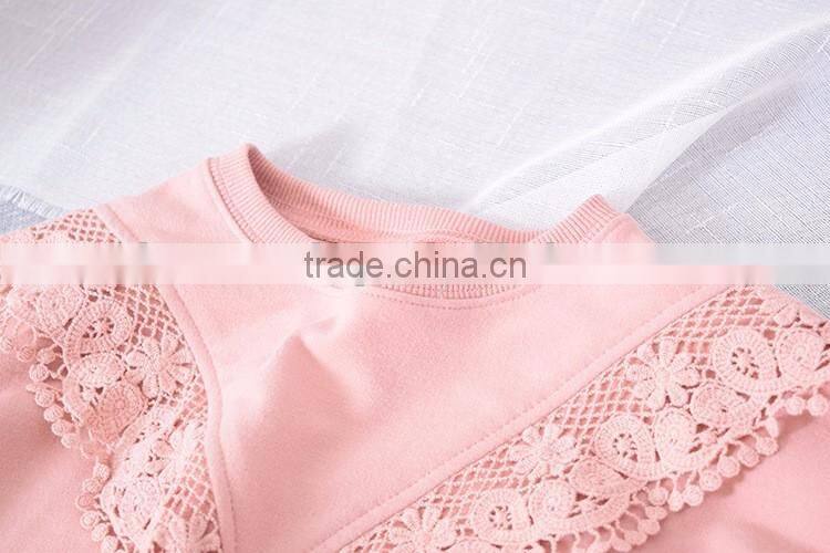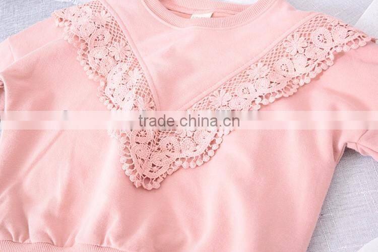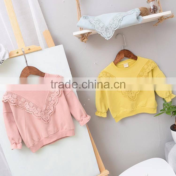 Sweet style solid color lace stitching wholesale baby girl sweatshirt