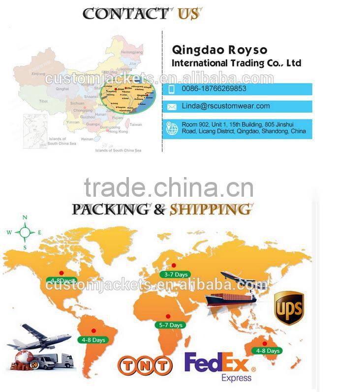 Royso offers you the Garment with your own logo embroidery or print with top quality . Our Jacket Minimum Order quantity only 25pcs per style, detail please contact with seller .