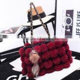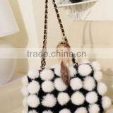 Korean Style Woman Rabbit Fur Ball Hand Bag Contrast Color Female Chian Bag