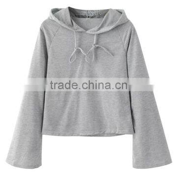 Small Quantity Accept Women Grey Raglan Sleeve Drawstring Hoodie With Custom Logo