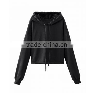 Fashion Black Long Sleeve Drawstring Wide Hood Cropped Hoodies for Girls