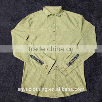 Green Men Slim Long Sleeves Dotted Print Shirts