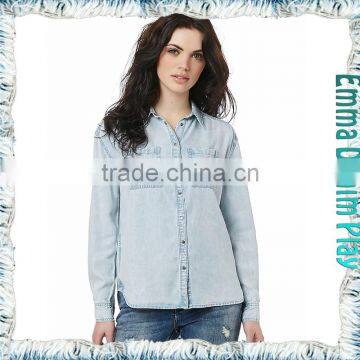 Chinese Manufacturer Girls Sexy Bleaching Wash Jean Shirt