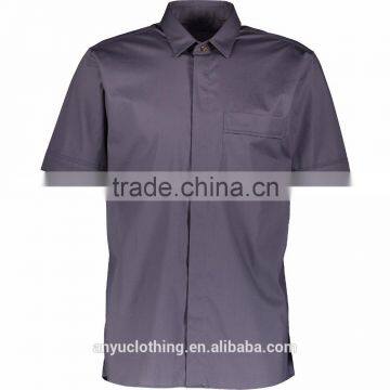 Men Customized Classic Hided Buttons Plain Grey Short Sleeve Shirt Wholesale