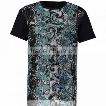 Latest Deaign Full Printed Teal & Black Floral Mesh T Shirt for Men