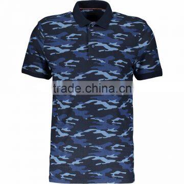 Fashion Tops Wear Men Regular Fit Blue Camouflage Polo Shirt With Button