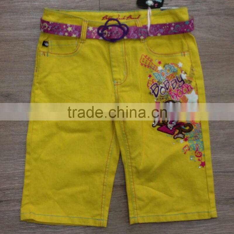 Girls Color Denim Shorts With Cut Belt#29BEH0013
