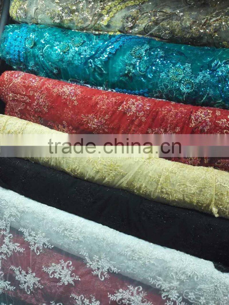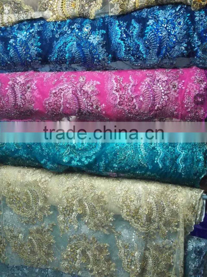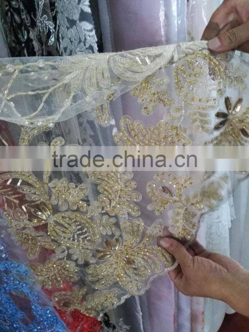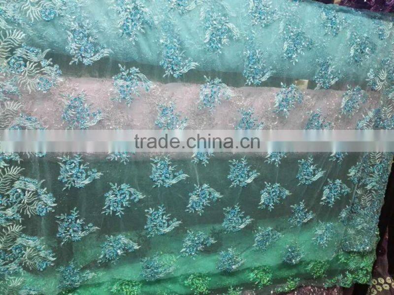 2016 Latest Bridal Lace Beaded Embroidery Lace Wedding Lace African Lace Fabric B3205