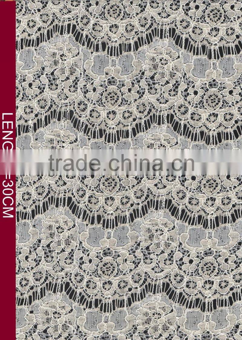We are manufacturer and trader for lace,mesh,scallop... As manufacturer,our mill is located in Changle city, which city spreads thousands of lace mills that taking up about 60% of Chinese lace market.We can source whatever design you need. Our advantage is to get the latest design and trend in the market and then develop by our mill to get cheap cost. As trader,we can use the greige from many local mills to strengthen our production ability in order to provide our client rapid delivery.