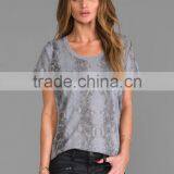 - Spring New Style: Blended Mesh Knitted Splicing One Shoulder Women's T-shirt With Folded Top