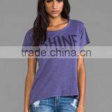 Rib Knit Neckline Raw Cut Hem T-shirt