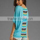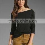 Ruffle Trimmed Neckline Open Shoulder Top for Lady