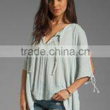 Pleated Front and Back Neckline Lace Trimmed Hem Top