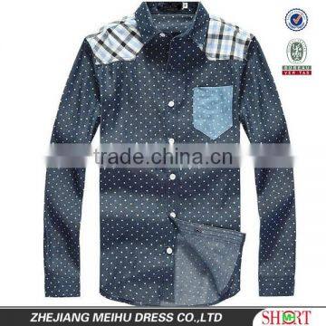 latest cotton light blue dot denim cowboy long sleeve casual shirt for men