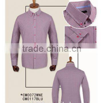 factory 100% cotton carbon peach finishing soft wine check long sleeve button up colar made to measure custom mens dress shirt