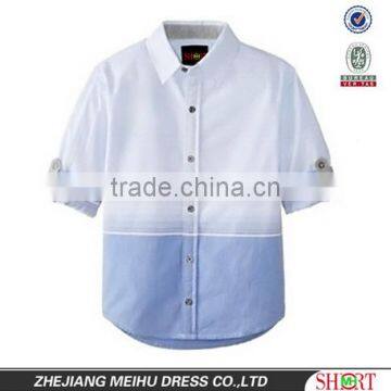 Boys Shirt Slim Fit Ombre Horizontal Stripe Long Sleeve Roll up Kid Shirt
