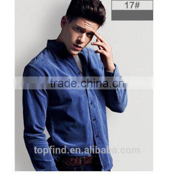 China Wholesale Classic Men Clothing Plain Deep Blue Corduroy Shirt 2014