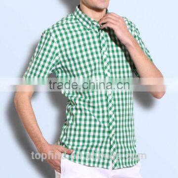 Plaid Young Style Green Color Short Sleeve Summer Collar Button Men Casual Shirt