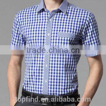Wholesale branded short sleeve blue color plaids men dress shirt &causal shirt