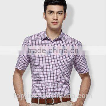 Classic style 100% cotton slim fit short sleeve plaids men shirt