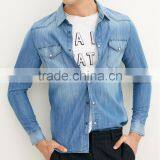 Summer New Fashion Casual Men Long Sleeve Sky Blue Corner Shirt