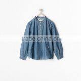 Lovely Point Denim Shirts Stand Collar for Girls Bubble Sleeve