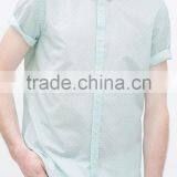 2015 Cotton/linen Shirt in Bubble Print Button-down Collar Half Sleeve Slim Fit Fashion Shirts