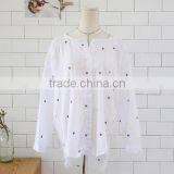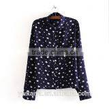 CVC Slim Fit Star Blue Fancy Casual Long Sleeve Women Shirt Wholesale