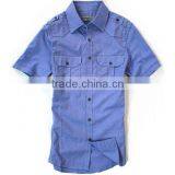 2014 New Fashion Solid Blue T/C Short Summer Casual Men Shirt