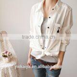 2014 New DesignT/C Cat Chest Pocket Cute Buttom Design Summer Casual Women Blouse