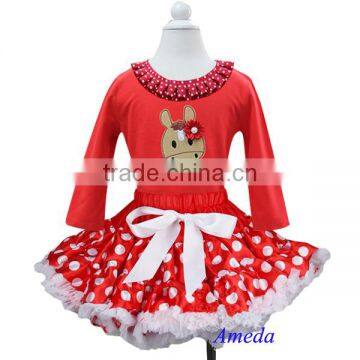 Red White Polka Dots Pettiskirt Plus Year of Horse Red Long Sleeves Top 1-7Y