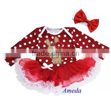 Baby Red Polka Dots Year of Horse Long Sleeves Bodysuit Pettiskirt and Headband NB-18M photo-1