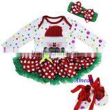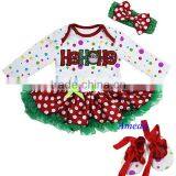 Baby Christmas HOHOHO Colorful Polka Dots Long Sleeves Bodysuit Jumpsuit Pettiskirt Headband Crib Shoes NB-18M
