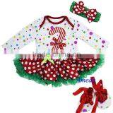 Baby Christmas Stick Colorful Polka Dots Long Sleeves Bodysuit Jumpsuit Pettiskirt Headband Crib Shoes NB-18M