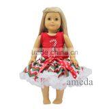 18" American Girl Doll Christmas Stick Red Tank Top With Red White Chevron Pettiskirt