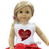 18" American Girl Doll Embroidered Daddy is my Valentine Red Heart White Tank Top