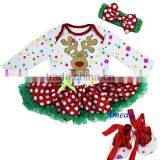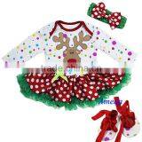 Baby Christmas Reindeer Colorful Polka Dots Long Sleeves Bodysuit Jumpsuit Romper Pettiskirt Headband Crib Shoes NB-18M
