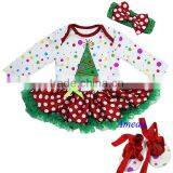 Baby Christmas Tree Colorful Polka Dots Long Sleeves Bodysuit Jumpsuit Romper Pettiskirt Headband Crib Shoes NB-18M