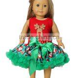 18" Doll Christmas Santa Green Pettiskirt With Mustache Reindeer Red Tank Top