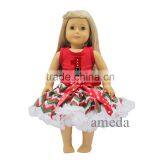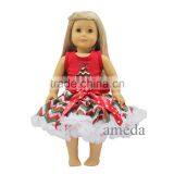18" American Girl Doll Christmas Stick Red Tank Top With Red Green Pettiskirt